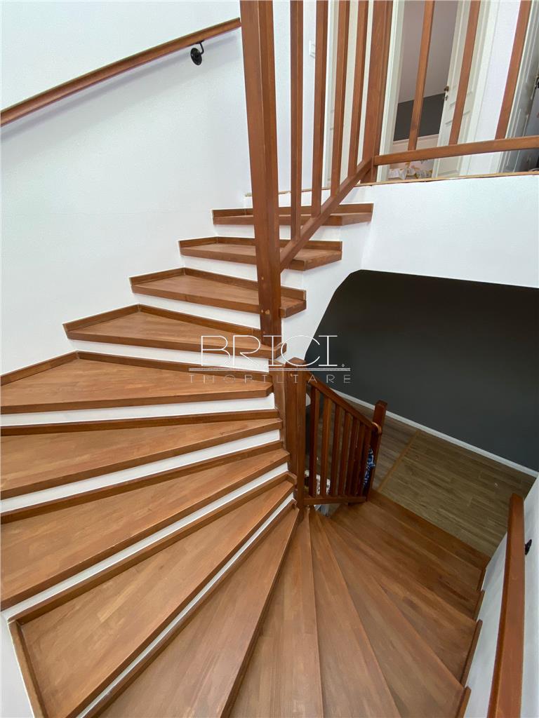 - Etaj: trei dormitoare deservite de o baie spatioasa cu vana/cada si cu lavoar dublu;