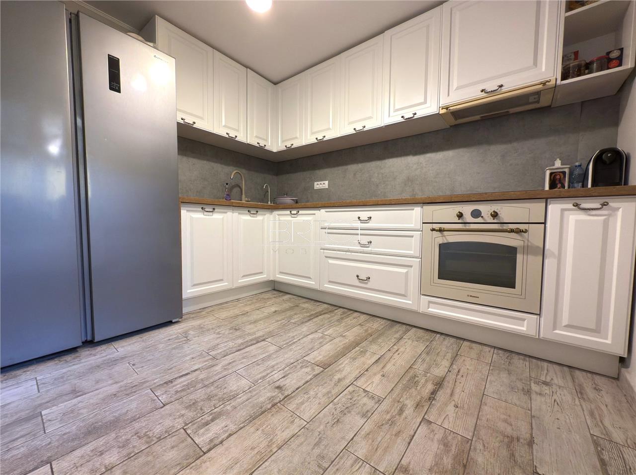Se vinde mobilata-utilata, ca in fotografiile din anunt, incalzirea se face prin centrala termica proprie, ferestrele sunt de tip termopan si profil PVC iar usa de la intrare este metalica.
